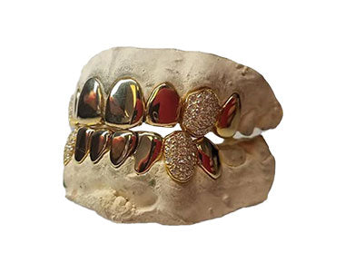 We offer a wide variety of diamonds to choose from for your fully flooded new cust deep cut grillz. Diamond Grillz can be made from Yellow, White, or Rose Gold.